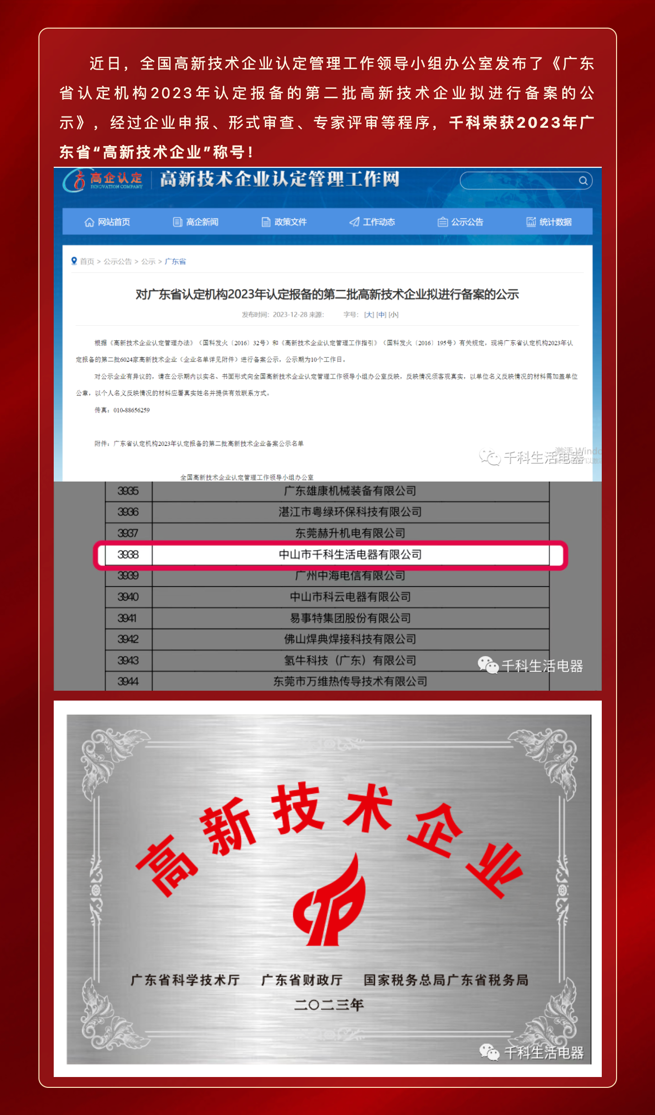 新年喜訊 | 廣東中山千科生活電器有限公司榮獲“國家高新技術(shù)企業(yè)”認(rèn)定!